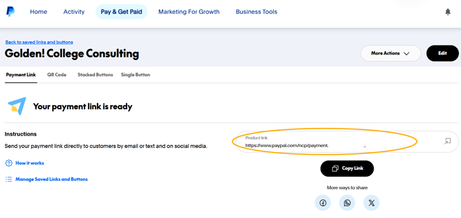 💡 Tip: Include in your Friendly Note a message such as “Clicking the payment link will redirect you to PayPal to complete your transaction securely.”