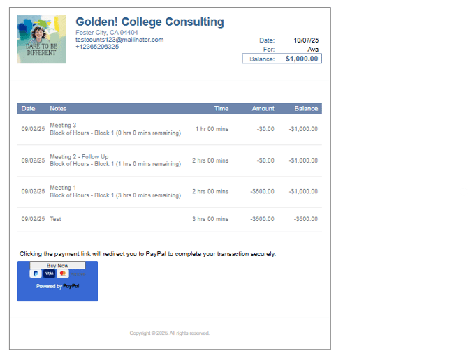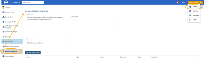 We recommend connecting Stripe but if you prefer to use Pay Pal here's how: CounselMore invoices can be customized to include a PayPal payment option, making it easier for families to settle balances quickly and securely. This guide will walk you through setting up a PayPal payment link and attaching it to your invoices.
