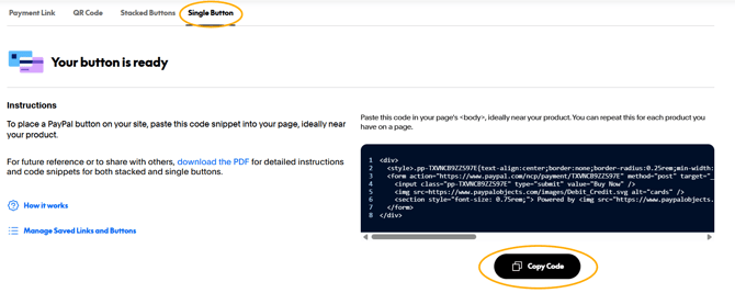 - A Payment Link (where your paste either PayPal link or single button code provided by PayPal)