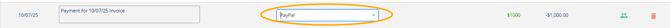 - You can edit the note field and select the payment method (e.g., PayPal) to clearly record how the payment was made.