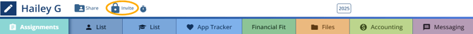 Go back to the contact banner, select “invite” for the parent, and share the Google Drive folder so they can upload necessary files, like the student’s transcript to the parent portal Files tab. (click folder and lock icon to invite parent)