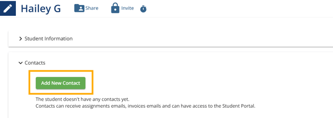 Click the pencil icon next to the student name (top of page) to add the parent’s contact and email details.