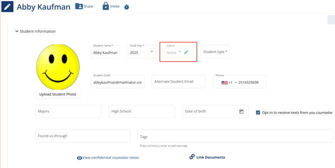 How to change the status of a student record in counselor portal - click here