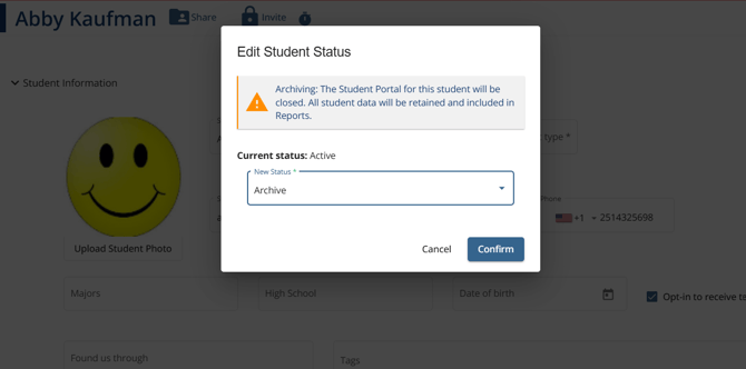 Caution: Archiving a student will revoke their portal access. If you activate the student again, you can send another invite then to restore access.