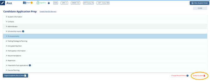 How do I delete a Student Record?