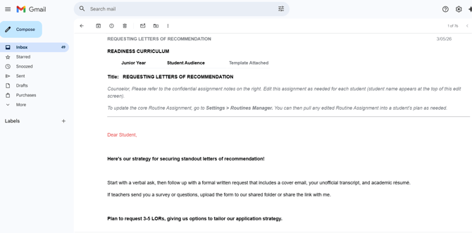 Steering both Student and Parent back to the original Routine Assignment resources the Counselor has already created.