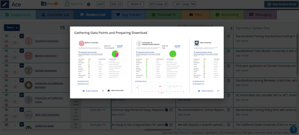 The Fit Evaluations Report allows counselors to download a report showing fit evaluation data for all colleges listed in a student's Student list tab. This report helps counselors review how well a student’s academic profile compares with their selected colleges.