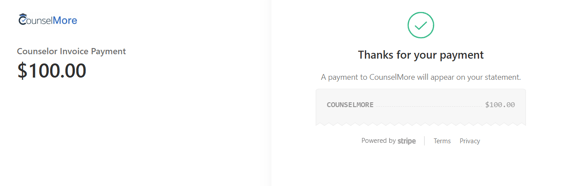 After connecting your Stripe account through Settings → Integrations → Stripe Connect, you can begin accepting payments directly through your CounselMore invoices.