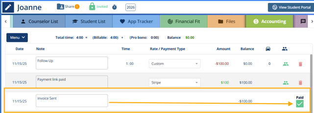 - Your Accounting tab updates in real time, so payment status and totals remain accurate without manual entry.