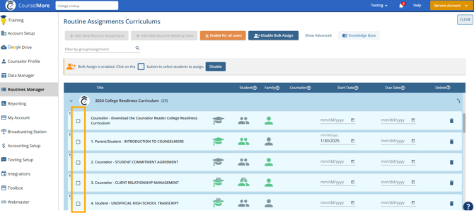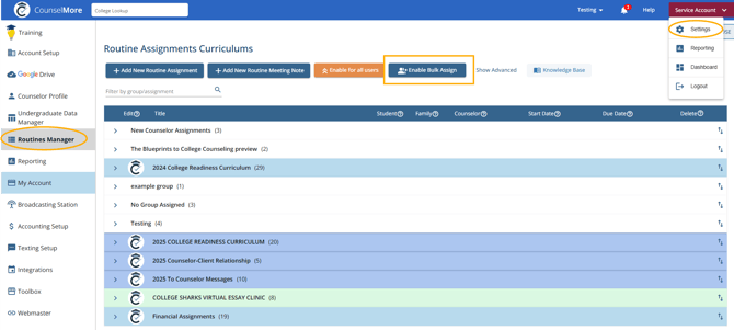 Routine Assignments, enable bulk assign.