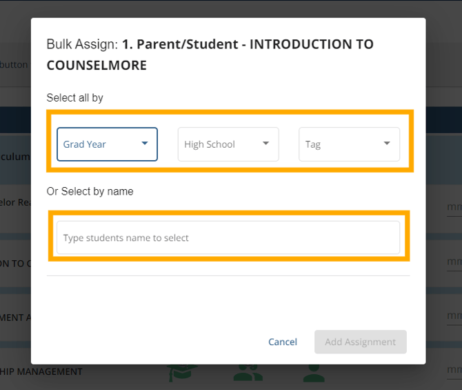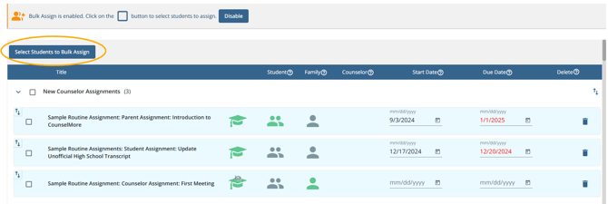 - Click "Select Students to Bulk Assign"