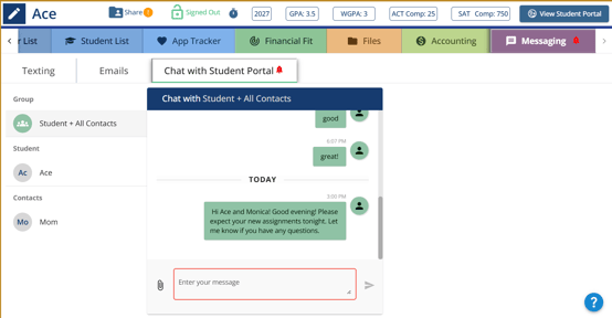 Group chat allows counselors, students, and parents to participate in the same conversation.