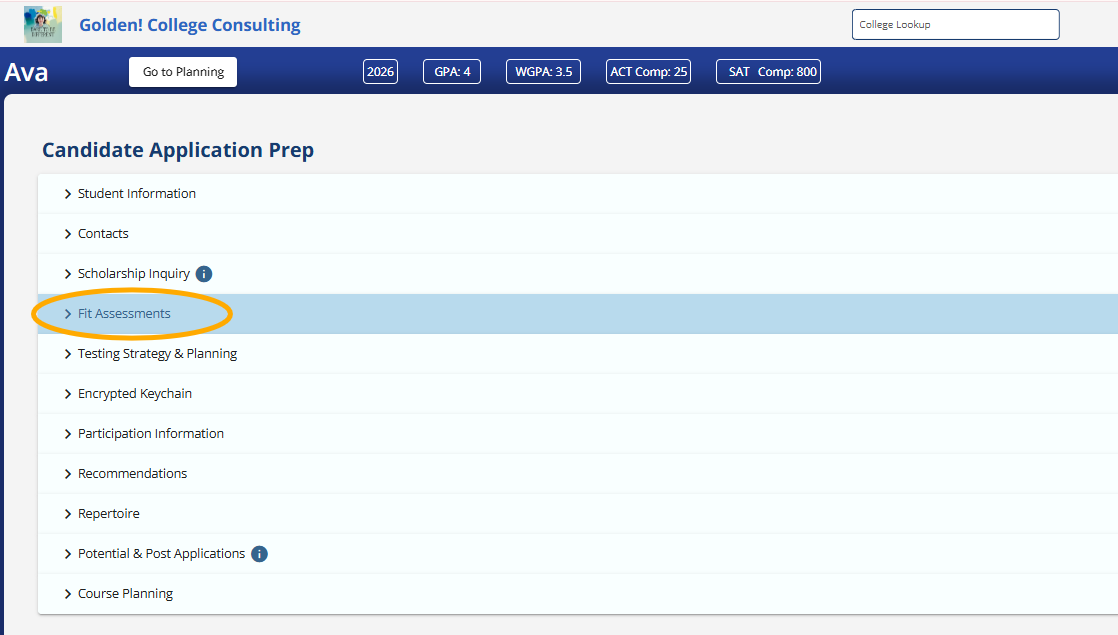 The Biography section mimics the Commonapp (most widely used college application) You are drafting the answers for your final application by completing the questions. Simultaneously, you are creating an academic resume and you are also providing your counselor with Campus Fit Evaluation