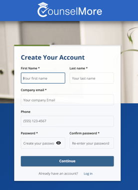 3. Once you have completed the registration process, you will be automatically directed to your personal CounselMore portal.