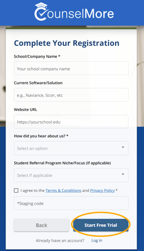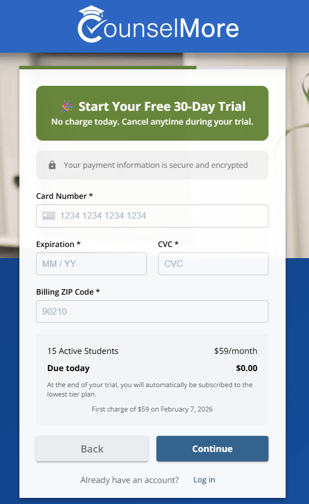 1. To get started, simply click on the link provided to register and choose the service that aligns with your requirements, whether you are an individual counselor or part of a counseling practice with other professionals.