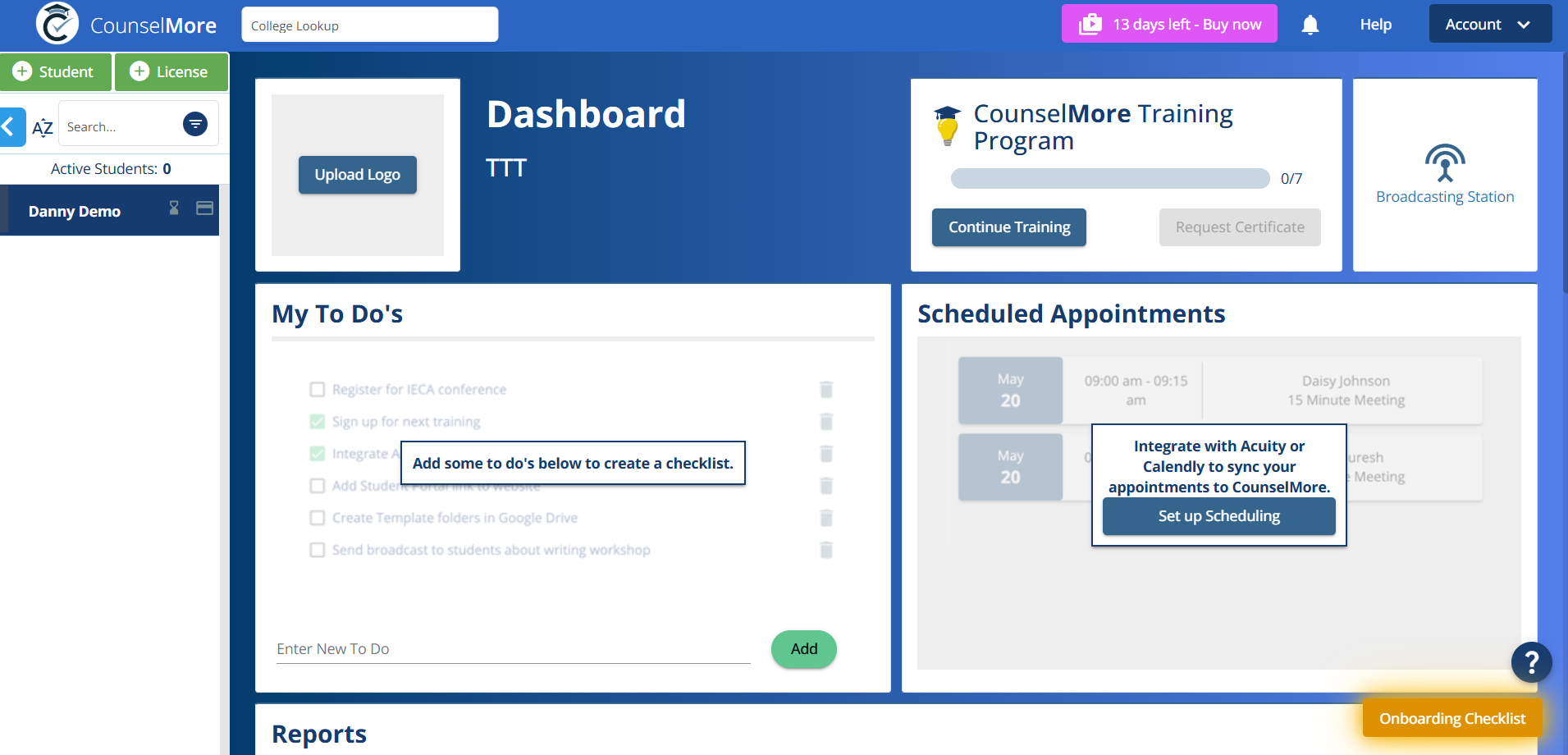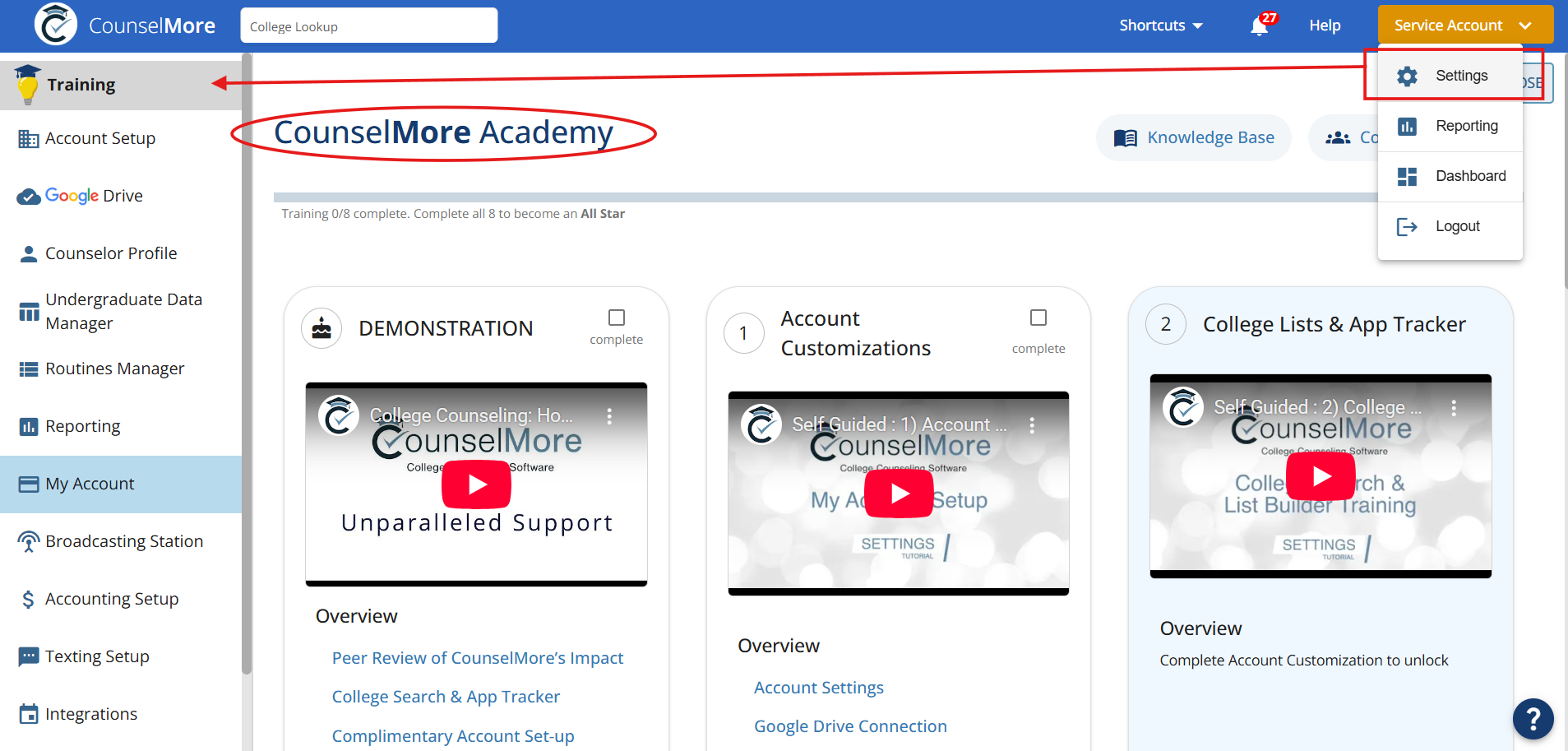 If you get stuck please email Support@CounselMore.com