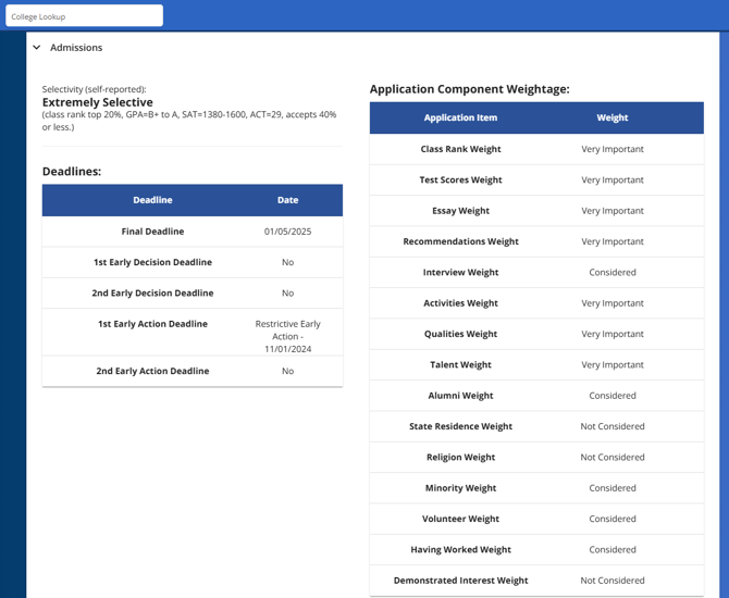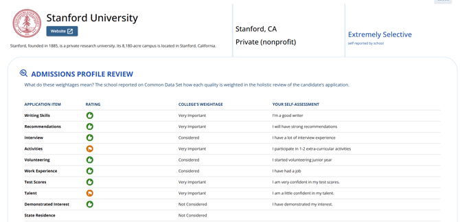 - College Weightage: The importance each school places on different application components.