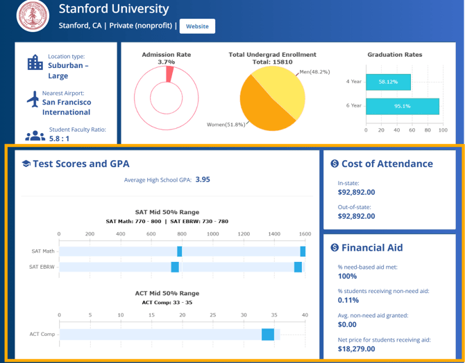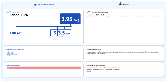 • Test Results: How the student's test scores align with the college’s admitted student range.