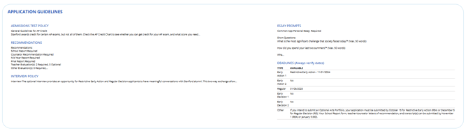 • School Profile & Application Guidelines: Additional details about application expectations and decision factors.