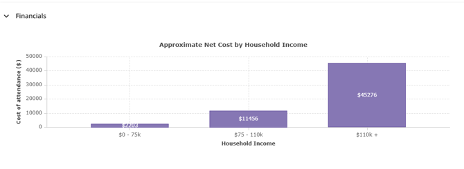 Approximate net cost by household income, helping families understand the expected cost.