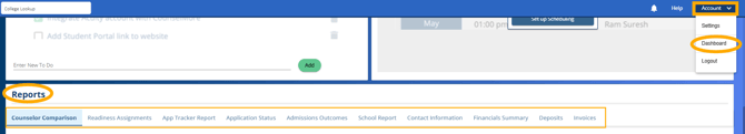 Counselors using CounselMore have access to separate reports that help compare schools and compare student preparation to aspiration. These reports provide insights into individual institutions, student compatibility, and application expectations.