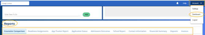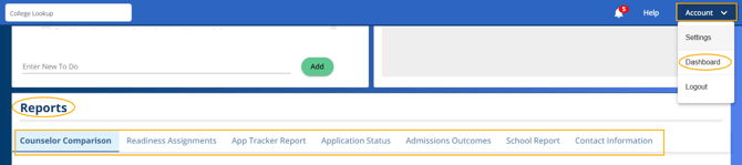 ◦ Go to Dashboard, scroll down to Reports.