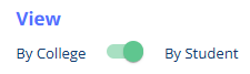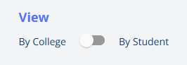 When you toggle the Admissions Outcomes report to View by Student, the report displays detailed, student-level admissions data with filtering and export options.