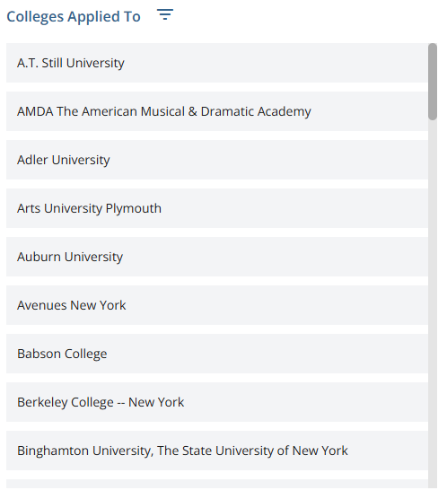 Below the graduation year filter, you’ll see Colleges Applied To, giving a quick reference to where students have submitted applications.