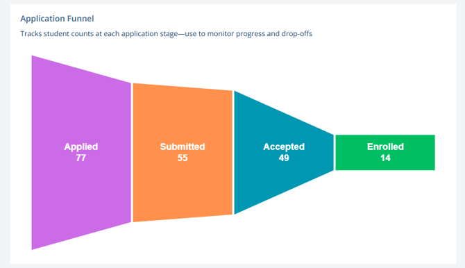 Use this chart to monitor engagement and drop-off points throughout the application cycle.