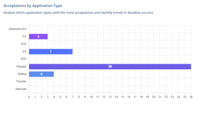 This chart shows which application types (e.g., EA, ED, Regular, Rolling, Transfer) result in the most acceptances.